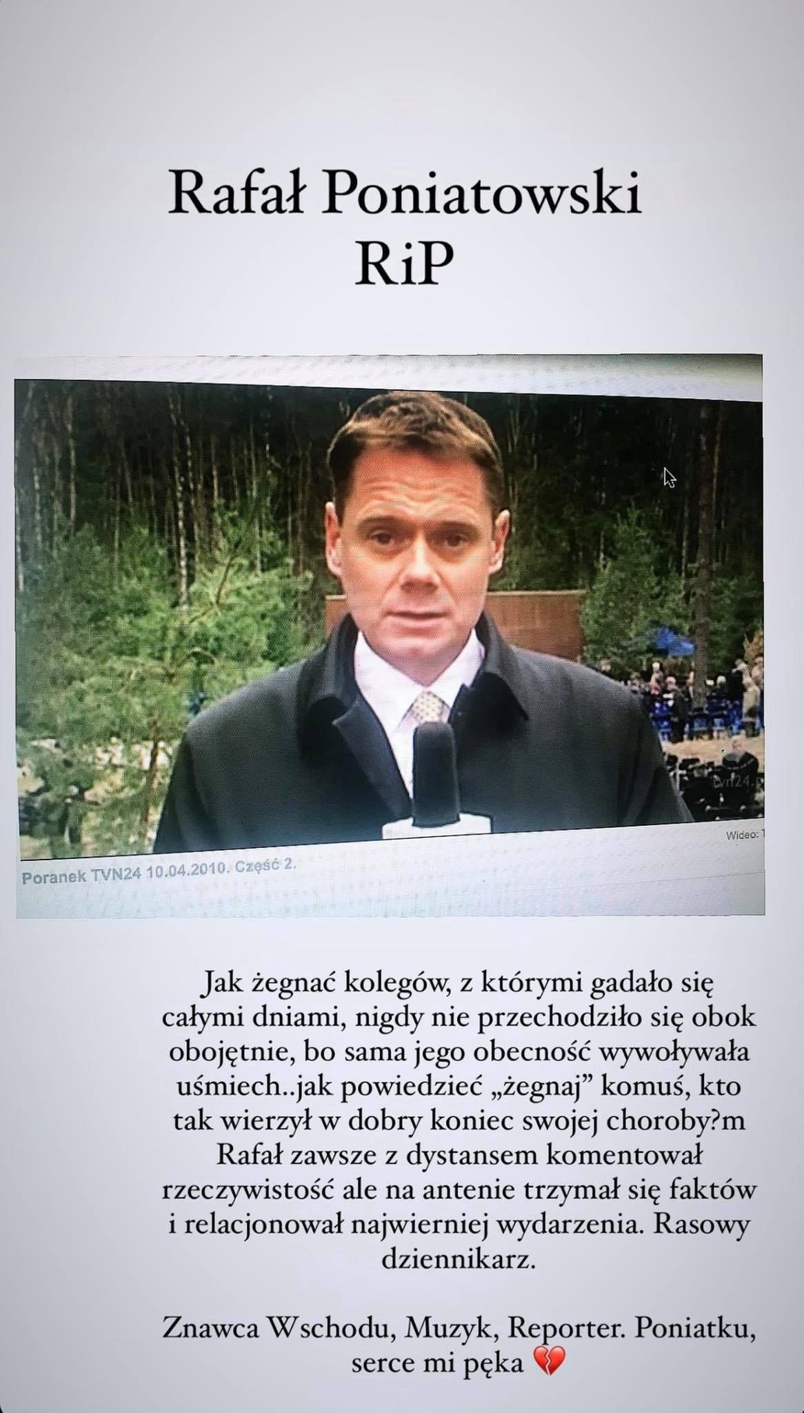 Rafal Poniatowski Nie Zyje Dziennikarza Wspominaja Dziennikarze Tvn24 Tvn24 from tvn24.pl W czwartek 27 maja w warszawie odbył się pogrzeb dziennikarza tvn, rafała poniatowskiego. Dziennikarz tvn24 rafał poniatowski po raz pierwszy opowiedział o chorobie. Reporter walczył z czerniakiem, a w leczeniu wspomagał się terapią simontona. Poniatowski poddał się terapii simontona, w której ważne jest odpowiednie wsparcie psychiczne. Rafał poniatowski z wykształcenia był muzykiem: Jeszcze w trakcie studiów zaczął pracę w wybrane dla ciebie. Dziennikarza pożegnały między innymi koleżanki ze stacji: Poniatowski szybko wrócił do pracy, jego koledzy przyznali, że zabija ich niewymuszonym humorem.